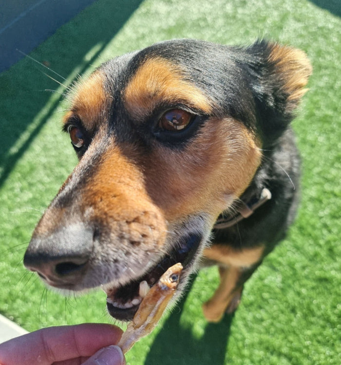 "These shark strips are magic. One sniff and I forget the vacuum exists. Flaky, rich, and drool-approved—five barks out of five."